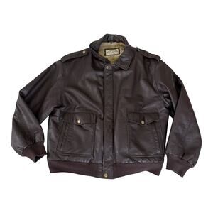 VTG Leather Bomber Jacket XXL Top Gun Shearling Lined Aviator Rugged Moto Brown