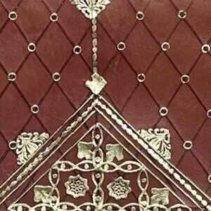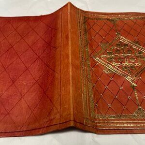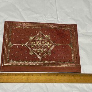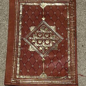 VTG Leather Book Notebook Cover Protector Gold Leaf Designs 7.25"x10"