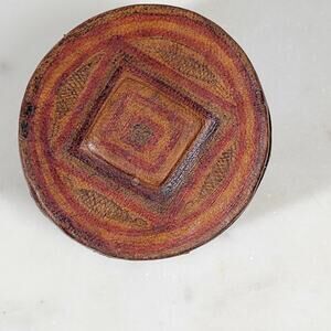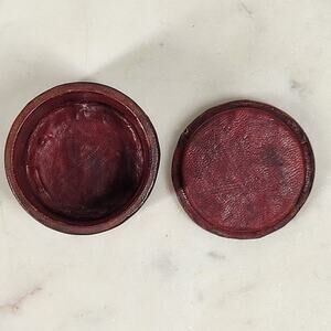 VTG Leather Box Lid 1.75" Brown Red Tooled Cylynder Storage Jar Travel