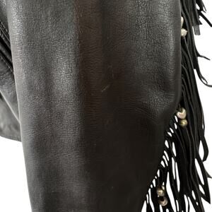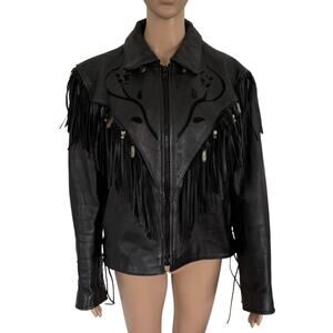 VTG Leather Fringe Rose Jacket Western Biker Boho Rockabilly Cowgirl Rodeo Blck