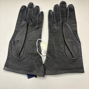 VTG Leather Gloves Black Embroidered Pure Silk Lined Made in France XS 7