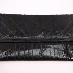 VTG 70's ELL (Leather of the sea) Black Large envelope style, flap over with snape closeing....3 partitions..2 zip...This bag was never used..Usely keep for special occasion.. In the 70's Ell was really an expensive bag. Over $200, if it where today..