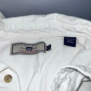 This is a pre-owned Lee Men’s XXL Classic Denim Long Sleeve Button-Down Shirt in White. It is made from 100% Cotton. This shirt is perfect for casual wear or dressing up. The classic denim look is always in style, and the white color is perfect for spring and summer.
