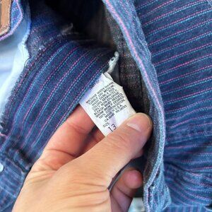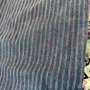 Beautiful jeans. Has a unique two tone pinstripe with light blue and red thread on the medium/dark wash blue jeans