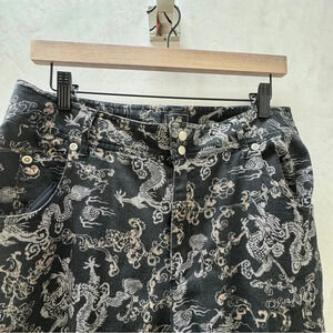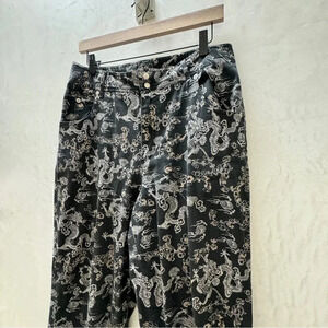 VTG Lees || Women's Dragon Printed Pants Black Ankle Cuffed Size 10