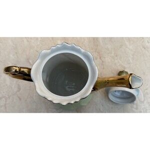 VTG Lefton Handpainted Porcelain Lidded Teapot #3065 Green Heritage Rose Pattern