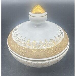 VTG Lefton Vanity Set 1752 White Hand Painted w/ Gold Trim Powder Vases/Bottles