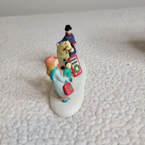 Children dragging Mom to Pony Ride in the snow among the trees. These accessory pieces bring life and movement to your village display.
