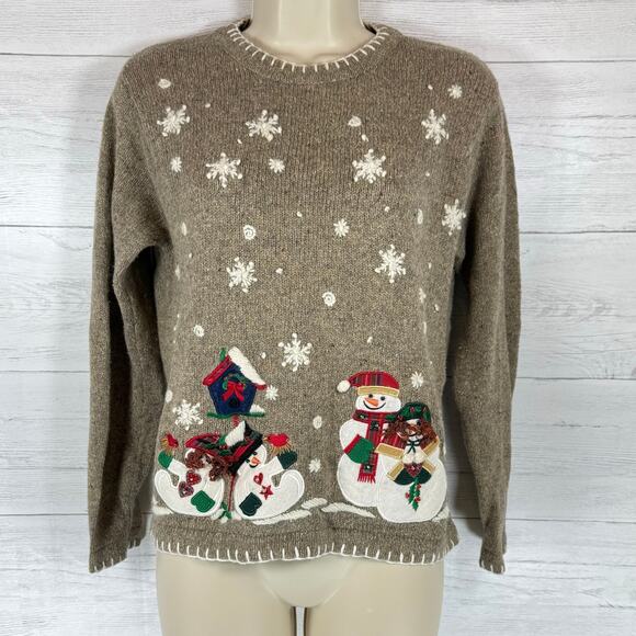 VTG Lemon Grass Petite Small tan Christmas Snowman Holiday Ugly Sweater embroid