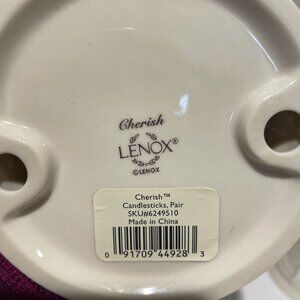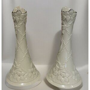 VTG Lenox CHERISH Porcelain Candlesticks Set of 2 Ivory Embossed Flowers Pearls