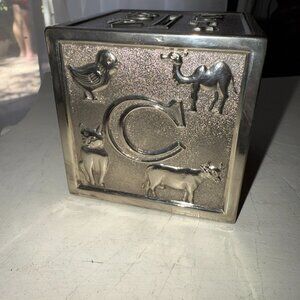 VTG Leonard Silver Plated ABCD Child's COINS Piggy Bank 3" SQUARE Hong Kong