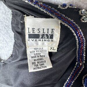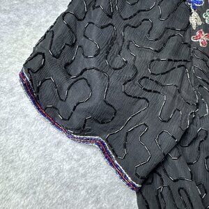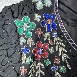 VTG Leslie Fay Evenings Too Womens XL Beaded Sequins Floral 100% Silk Black