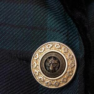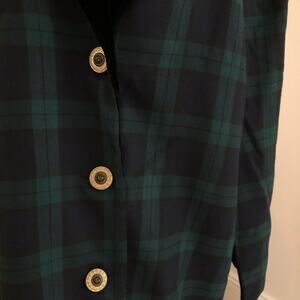 π Additional Details: Green & Blue Plaid, Velvet/Velour Collar, 3 Buttons with neat Lion details, Unlined