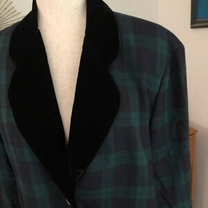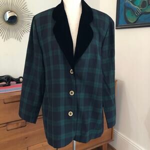 VTG Leslie Fay Plaid Blazer Velvet Collar 16 XL USA Lion Preppy Equestrian 80s
