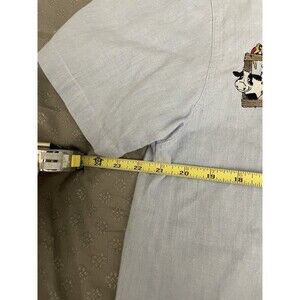 Add a pop of color and playful design to your wardrobe with Let's Quizz Again New York Women's Blue Flag Patterned Button-up Blouse. This collared shirt features short sleeves and embroidered animal accents that give a fun and casual vibe. Made of 100% cotton and machine washable, it's easy to care for and perfect for any casual occasion. The size is L and the fit is regular, suitable for everyday wear. Ideal for those who love flags, this blouse is a great addition to any women's wardrobe.