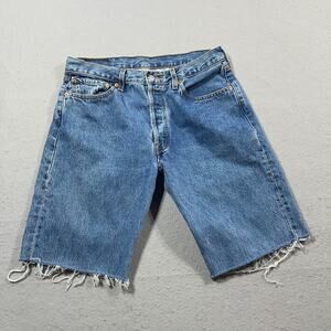 VTG Levi’s 501 Denim Shorts Men 34 Button Fly Cutoff Raw Hem Blue Jeans