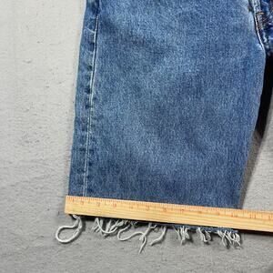 👕 Condition – Pre-owned in good condition. No major flaws, but features intentional raw hems with light fraying from custom cutoff. Denim is strong with no holes or stains. Gently faded with classic Levis wear. 100% cotton, made in the Dominican Republic. Please see photos for details.. Photos show the exact item—please review them carefully before purchasing. Items are cleaned per policy and stored in a smoke-free environment.