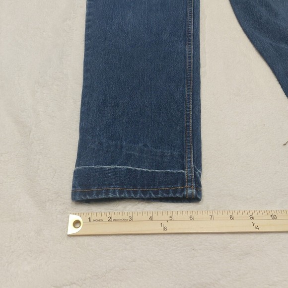 VTG Levis 512 Slim Fit Tapered Leg Jeans High Rise Womens Size 14R Blue USA Made. Distress lines around the bottom of each pant leg from being previously hemmed. Please see pictures for condition and measurements for proper sizing.