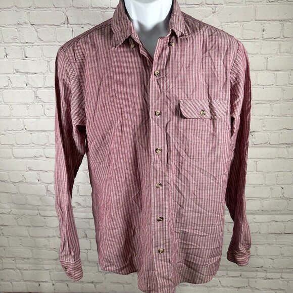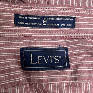 VTG Levi’s Brick Red White Striped Lightweight Long Sleeve Button Up Shirt M