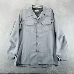 Style: Vintage mens long sleeve shirt jacket with wide 70s style collar and button front.
