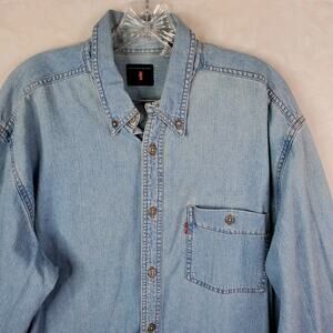 VTG Levi's Red Tab Button Down Denim Work Shirt Adult Sz Large Blue 100% Cotton
