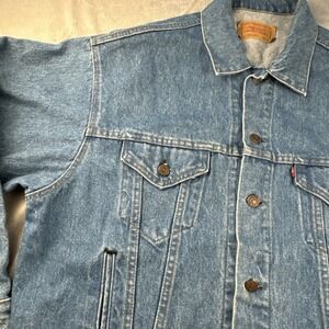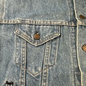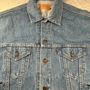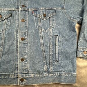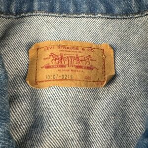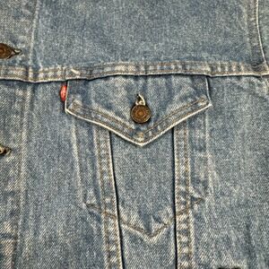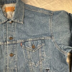 The jacket is a true Levi's brand product, made in the United States in the 1990s. It is perfect for those who love vintage clothing and want to add a touch of classic American style to their wardrobe. This jacket is an ideal addition to any collection and is sure to make a statement wherever you go.