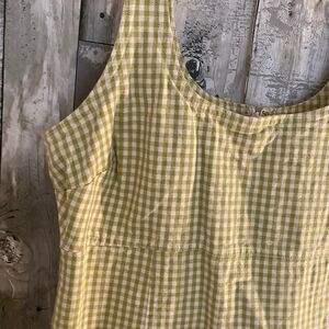 Gently used, Vintage women's Levi's green and white small plaid mini sleeveless babydoll dress, good condition size S
