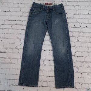Good Condition :Jean has been previously worn with some wash wear/fade. Stains on front area of jean. Please review pictures.