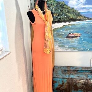 VTG Lew Magram, Stunning BodyCon Dress, Sexy High Split in Front in Orange Sherbet, note:this is a ‘70’s piece & does have 2 thinner areas and slight wear… but I would be thrilled to rock it at any event:) see last 2 pics🧡#luxuryresale #consignment #instafashion #style #instastyle #resale #designerconsignment #fashionista #sustainable #luxury #couture #thrift #bargain