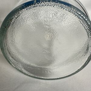 This is a vintage Libbey NSA drinking water pitcher from the mid-century era. Made of clear glass in a Mid-Century Modernism style, it is a medium-sized pitcher with an antique design. The pitcher is marked with the brand "Libbey" and is a collectible item for kitchen and home decor.