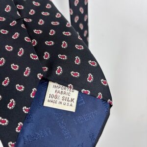 VTG Liberty Of London 100% Silk Tie Navy Blue Paisley Classic Old Money 3.25"