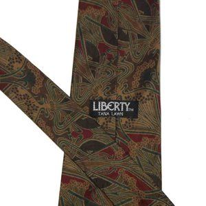 VTG Liberty of London Tie Tana Lawn Cotton Fabric Brown Red Green Floral Men's