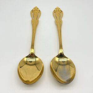 VTG Lifetime MONA LISA Serving Spoon Gold Electroplated Stainless Flatware Japan