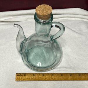 Stylish light green vintage glass pouring bottle/cruet with a cork top