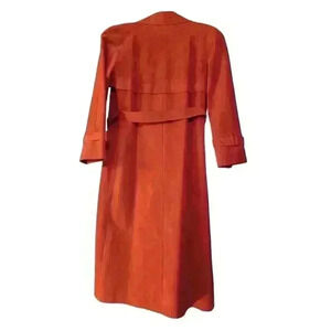 This Lilli Ann trench coat is a luxurious addition to any wardrobe. The outer shell is made of ultra suede in a cherry color, giving it a vintage and elegant look. It has a long coat length with long sleeves and a button closure, making it perfect for any occasion. The jacket is a size 8 and has a regular fit. The lining material is made of polyester, ensuring comfort and warmth. This jacket is perfect for anyone looking for a stylish and versatile addition to their wardrobe.