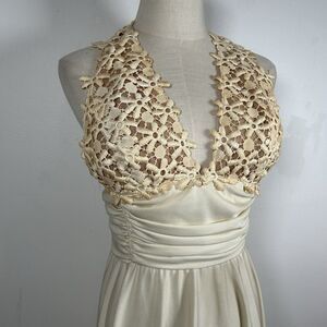 VTG Lilli Diamond of California Long Maxi Dress Gown Lace Halter Size Small 80s