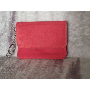 VTG Lillian Vernon Red Suede Genuine Leather Card Holder Make-up Pouch Wallet