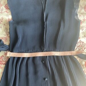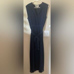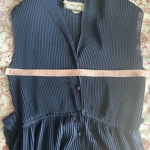 VTG Lillie Rubin Plisse Pleated Button Down 50s Collared Navy Midi Maxi Dress