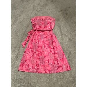 VTG Lilly Pulitzer Strapless Tube Corset Lined Silk Dress Pink Floral Sz 0