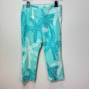 VTG Lilly Pulitzer Teal Blue Palm Tree Capri Pants 10 White Label Y2K Cropped