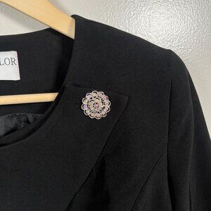 VTG Lily & Taylor Asymmetric Evening Jacket Size 8 Black Rhinestones Church