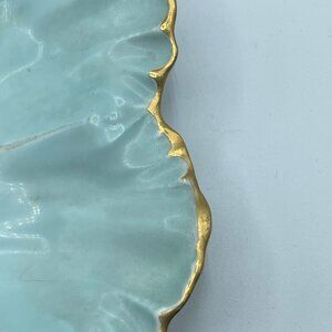 VTG Limoges AL Depose Porcelain Plate Teal Scallop Sailboats Gold Trim 9"