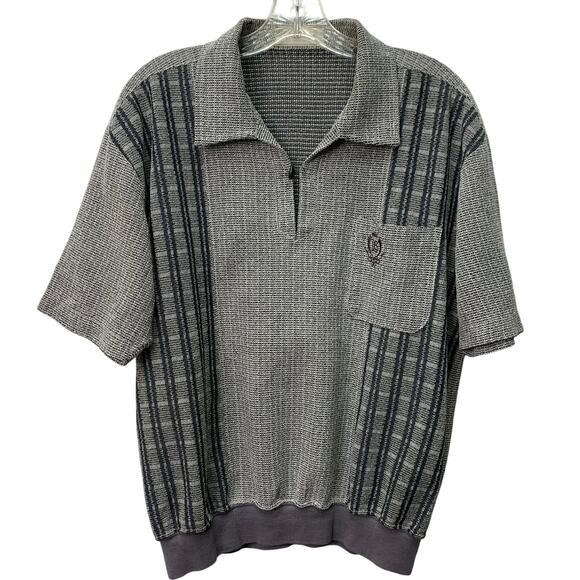 VTG Lindbergh Mens Large Gray Black Woven Pullover Short Sleeve Polo Shirt