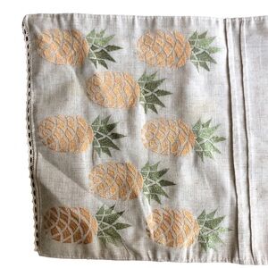 VTG Line Blend Long Table Runner Embroidered Pineapples Tan Crochet Edge 68X14. Lined
