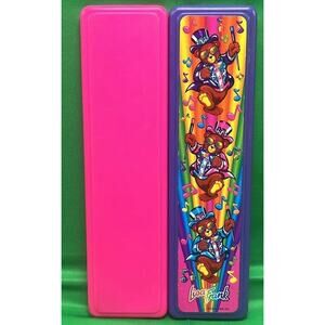 VTG Lisa Frank Rainbow Dancing Bear Music Hard Plastic Pencil Case Stationary