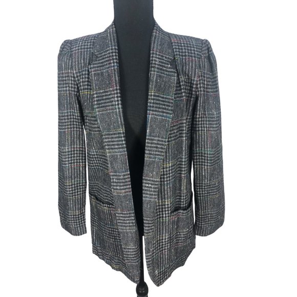 VTG Lisa Gayle Glen Plaid Open Blazer Size Med