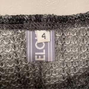 This is a European brand sized “4”. Based on the measurements it appears to be a US Size Large. Some areas of pulling. An open weave gauzy sheer knit. Shoulder pads. Split hem.