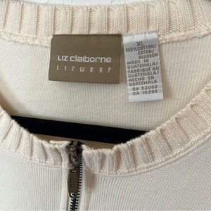 VTG Liz Claiborne Cozy Neutral Ivory Crewneck 1/4 Zip Ribbed Hems XL 100% cotton