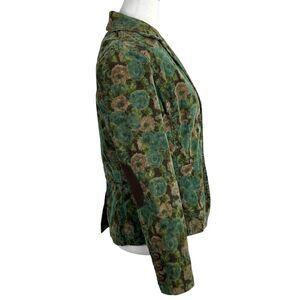 VTG Liz Claiborne Green/Brown Floral Printed Elbow Patch Corduroy Jacket Small