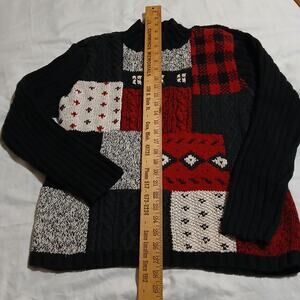 VTG Liz Claiborne Large Mock Neck Cotton Blend Red/Black/White Block Sweater